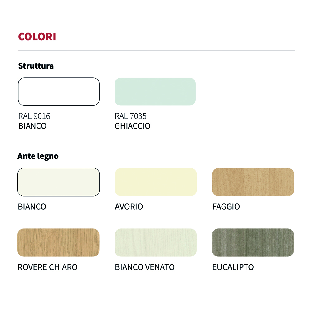 Armadio metallico alto METAL con ante scorrevoli in nobilitato complete di serratura con doppia chiave pieghevole, maniglie incassate in plastica colore nero, divisoria verticale e numero 4+4 ripiani interni. Dimensione : 150x45x200h cm.