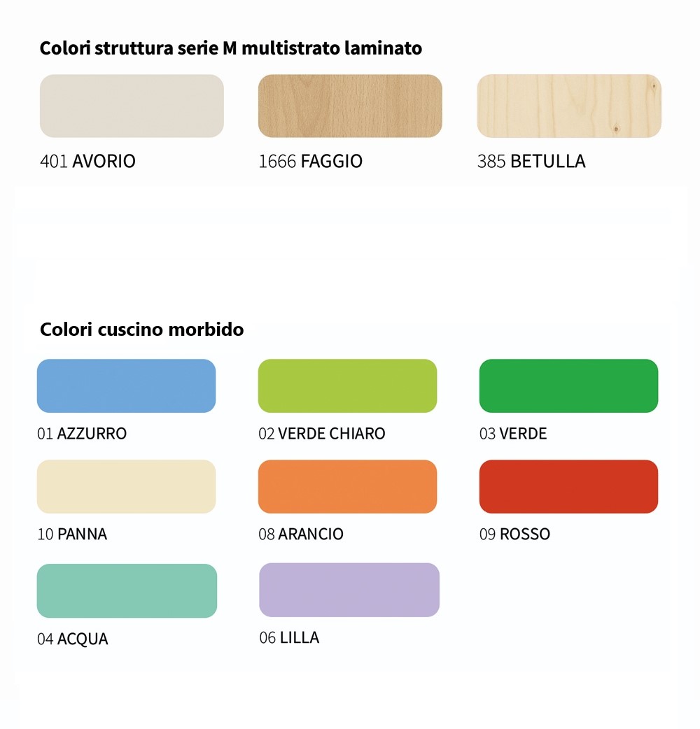 La serie dei mobili M è sovrapponibile ed accostabile ad altri della stessa famiglia. Struttura multistrati spessore 18 mm composta in ogni sua parte. Il sistema di assemblaggio avviene con spinotti in ottone, spine in legno, ed eccentrici in metallo, che garantisce una veloce e facile disassemblabilità. Dotato di 1 ripiano in legno, fissato alla struttura con speciali perni inestraibili in senso orizzontale. Bordi al naturale a raggiatura antinfortunistica. Schienale spessore finito a vista così’ da consentirne l’uso come elemento divisorio. Su ruote con freno.