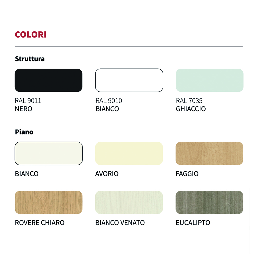 Tavolo circolare linea EQUIPE composto da un piano circolare spessore 40 mm bordato abs ed un sostegno mettallico composto da un piatto a terra ed un doppio fusto metallico.
